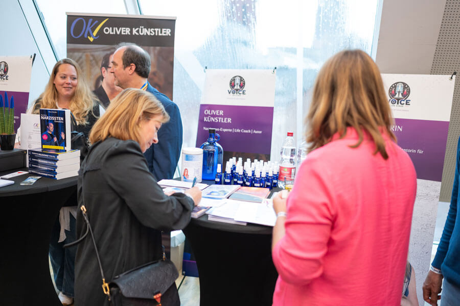 Erlebe Voice on Stage 3.0 live: starke Beiträge auf der Bühne, echte Gespräche in der Business-Area und ein Umfeld, in dem Kontakte entstehen. ✦ Triff Unternehmer und Anbieter persönlich an den Ständen. ✦ Nutze Networking-Zeiten für Austausch, Kooperationen und neue Chancen. ✦ Nimm Learnings aus der Praxis mit – klar, greifbar und umsetzbar. ✦ Entdecke Angebote vor Ort und profitiere von Messe-Konditionen bei ausgewählten Ausstellern. ✦ Spüre, wie aus einem Event konkrete Verbindungen werden, die nach dem Kongress weiterlaufen.